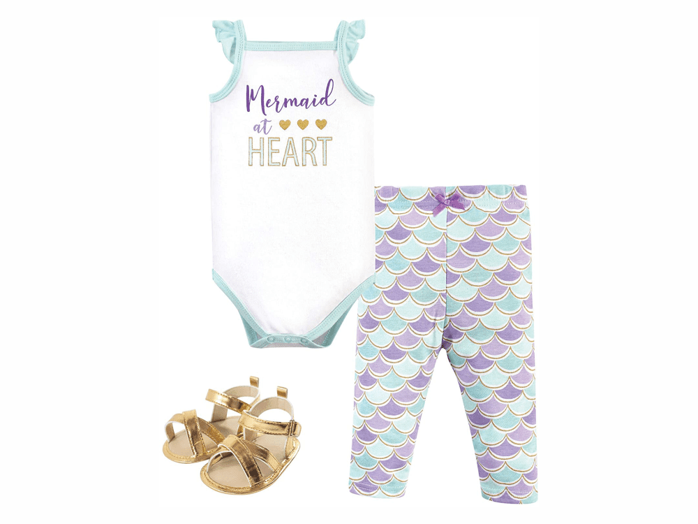 Cotton Bodysuit, Pant and Shoe Set, Mermaid