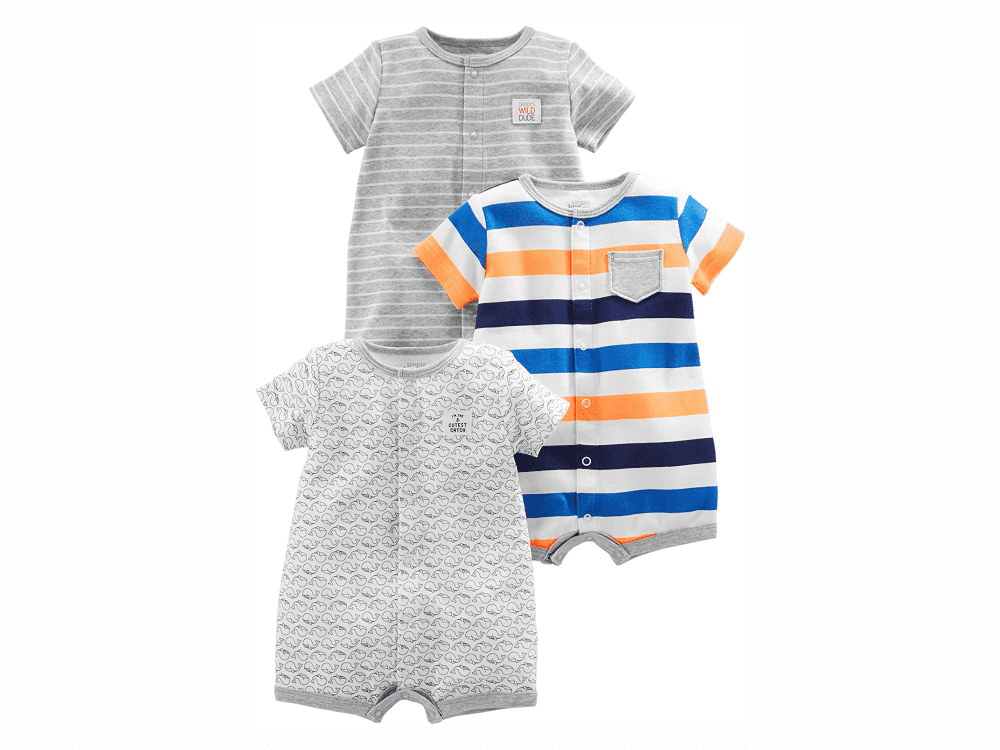 3-Pack Snap-up Rompers, Stripe, Whale, Tiger
