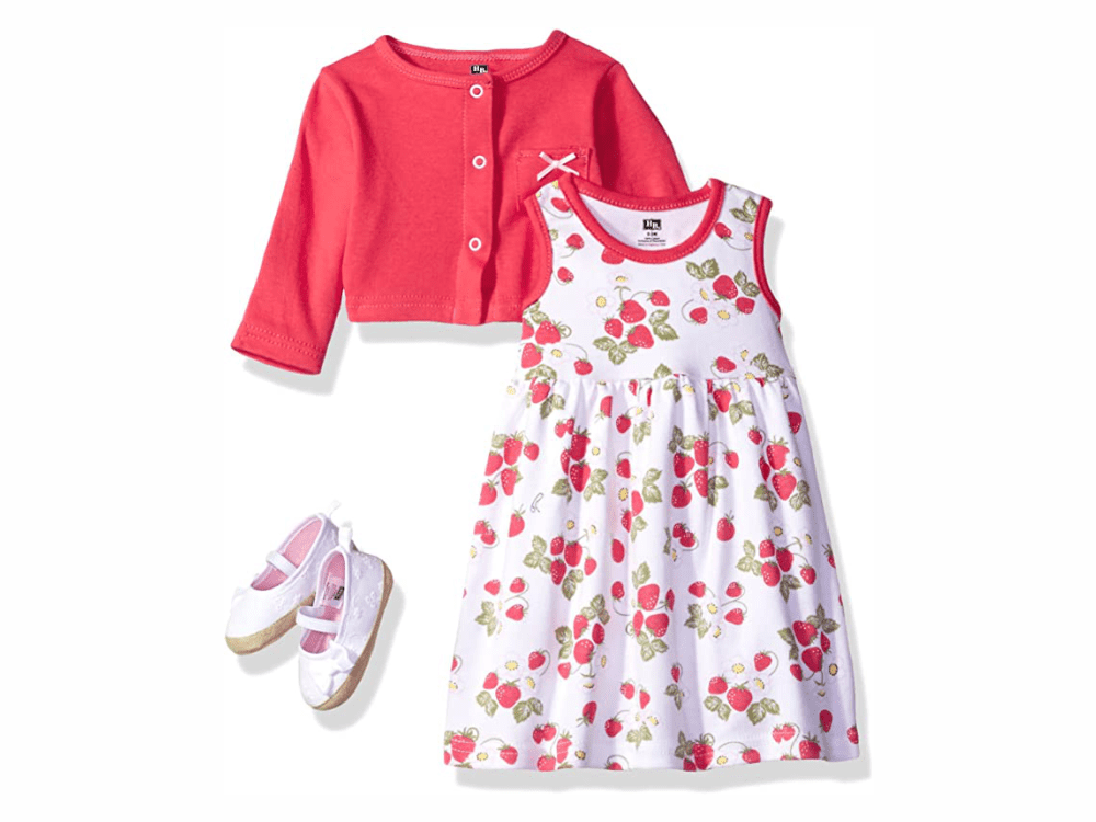 Dress, Cardigan and Shoe Set, Strawberry