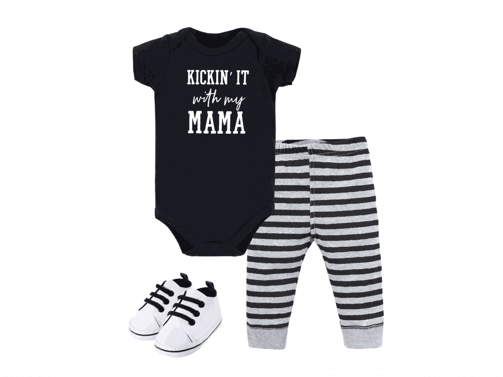 Little Treasure Cotton Bodysuit, Pant and Shoe Set, Kickin' It