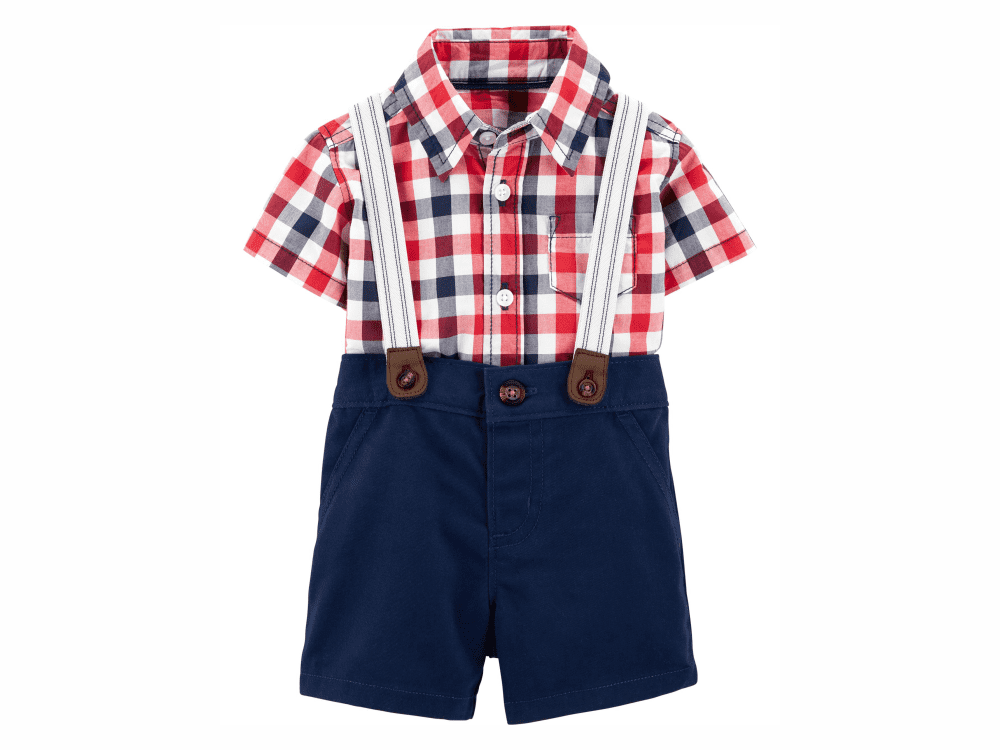2-Piece Gingham Bodysuit & Chambray Short Set