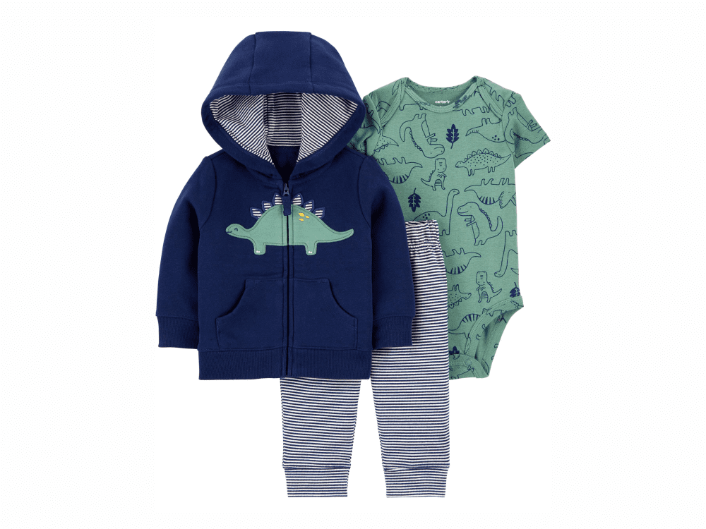 4-Piece Jacket, Pant, and Bodysuit Set, Navy Dino