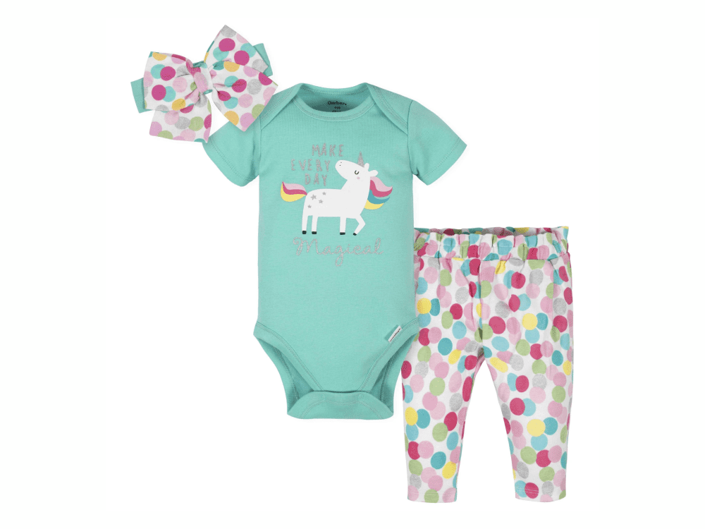 3-Piece Baby Girls Unicorn Bodysuit, Pants & Cap Set