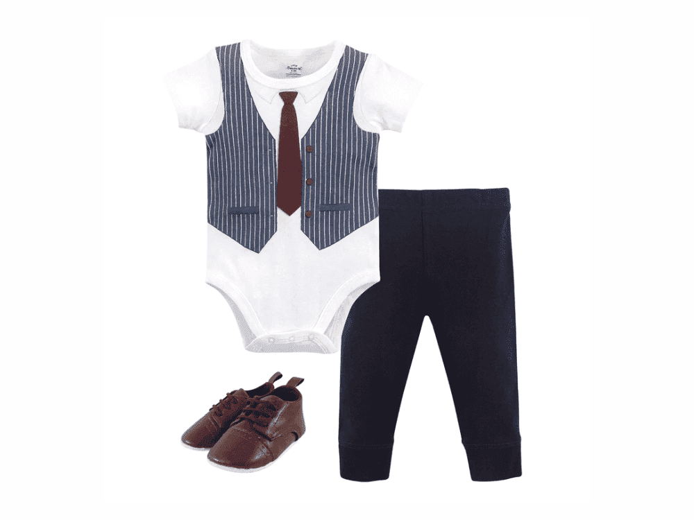 Bodysuit, Pant and Shoe, Navy/Burgundy Vest