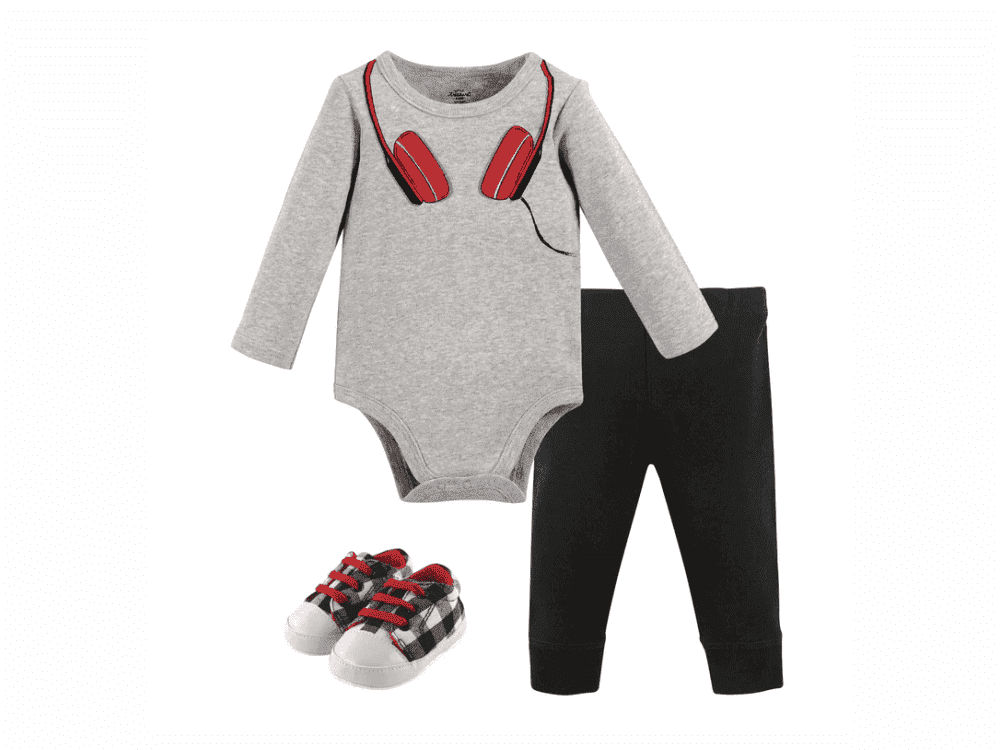 Long-Sleeve Bodysuit, Pant and Shoe, Headphones